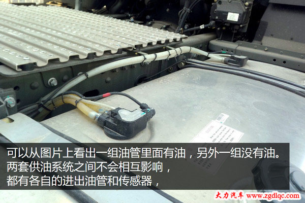 從照片上可以看出兩個(gè)油箱之間沒有之間的關(guān)聯(lián),分別有自己的出油管和進(jìn)油管,甚至還有單獨(dú)的傳感器等等,不過好像沒有燃油預(yù)熱功能?梢灾肋@兩個(gè)油箱的供油系統(tǒng)是單獨(dú)的。兩套單獨(dú)的供油系統(tǒng)不會(huì)相互影響,以免造成不同標(biāo)號(hào)的柴油混合。
