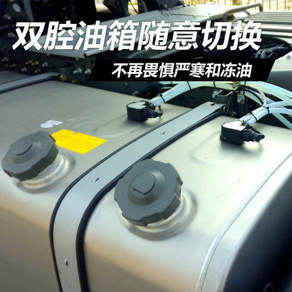 在一些高寒地區(qū)經(jīng)常出現(xiàn)柴油被凍、掛蠟的情況,使得很多車主不得不加裝一個(gè)副油箱,經(jīng)常是0號(hào)柴油和-35號(hào)柴油混用,但是由于技術(shù)、工藝等問題造成加裝的油箱在外觀、實(shí)用性上比較差。而重汽原裝的雙腔油箱正好解決了這一問題,獨(dú)立的供油系統(tǒng)可以主副油箱之間柴油不會(huì)混合在一起,同時(shí)通過手動(dòng)切換閥門可以供應(yīng)不同標(biāo)號(hào)的柴油,十分的方便。