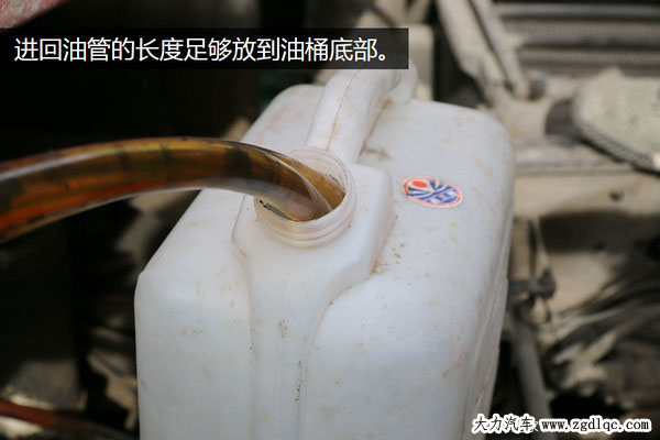 經(jīng)過一番努力,副油箱的出油和回油管都已經(jīng)被拆卸下來,并且管子的長度也足夠放到塑料容器的底部,接下來開始準(zhǔn)備測試用的柴油。