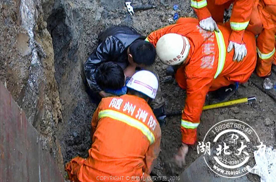 一名工人在旁邊不停地呼叫被埋壓者,消防戰(zhàn)士不停地用雙手往外挖刨泥土。時(shí)間在一分一秒地過去,被埋壓者的身體漸漸露了出來。