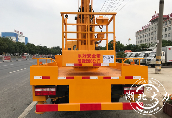 東風(fēng)大多利卡空作業(yè)車依客戶要求可定制18米三節(jié)折疊式作業(yè)臂,大力高空作業(yè)車采用前后H型四液壓支腿,轉(zhuǎn)臺、工作斗雙工位操作雙工位操作,可360°旋轉(zhuǎn)、工作斗額定載質(zhì)量200公斤,配置1噸吊鉤,貨箱式平臺。
