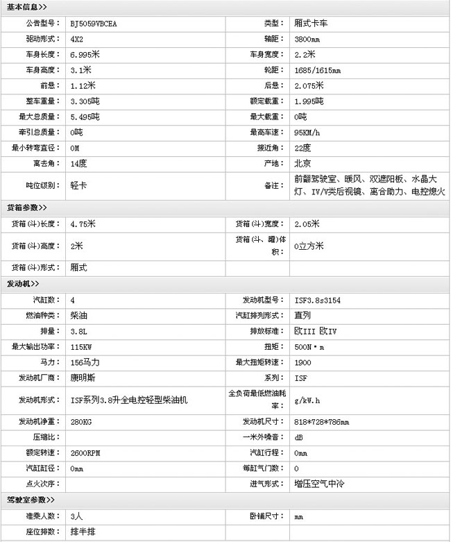 福田奧鈴(BJ5059VBCEA)廂式載貨車