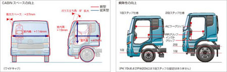 新Condor搭載了UD最新研發(fā)的GH7發(fā)動機(jī)。GH7為直列6缸柴油發(fā)動機(jī),缸徑110mm,行程123mm,排量7.013L,壓縮比17.5,每缸4氣門。GH7共有兩個型號:GH7TA輸出功率180kw(2500rpm),最大扭矩716Nm(1400rpm);GH7TB輸出功率206kw(2500rpm),最大扭矩883Nm(1400rpm)。GH7發(fā)動采用共軌燃油噴射系統(tǒng),噴射壓力可達(dá)200Mpa以上,并采用新一代高增壓型VNT可變噴嘴渦輪增壓器,電控系統(tǒng)對發(fā)動機(jī)深入精細(xì)的管理,使其具有良好的動力性能和燃油經(jīng)濟(jì)性。GH7除了加裝了SCR催化氧化還原裝置外,還增加了UDPC(UD Particulate Cleaning)UD顆粒物清洗裝置,進(jìn)一步降低氮氧化物(NOx)和可吸入顆粒物(PM)的排放量,以達(dá)到日本2009年出臺的新排放標(biāo)準(zhǔn)。