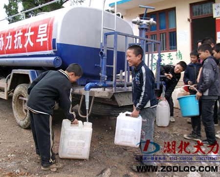 記者了解到,東蘭縣消防大隊從去年8月份開始每天都會為缺水村民送水,哪里缺水就把水運到哪兒。“我們大隊有2輛水車,每天7點多就出發(fā)為村民送水,一車能裝6頓水,最忙的時候一天運了8次水!睎|蘭縣消防大隊中隊長趙志峰說,“這些都是從湖北大力購回的運水車,車子的質量很不錯,而且價格也很合理!