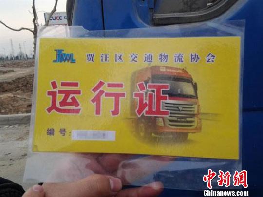 車輛為“魯”字牌照的王師傅介紹說,今年春節(jié)前被查住后,不情愿地加入了物流協(xié)會(huì),交錢辦了這個(gè)“運(yùn)行證”,每年500元會(huì)費(fèi),另外按照自己車輛的噸位,每月每噸還要交70元的稅錢,同時(shí)每個(gè)月都要換發(fā)這個(gè)運(yùn)行證,每月還要交10元錢的工本費(fèi)。