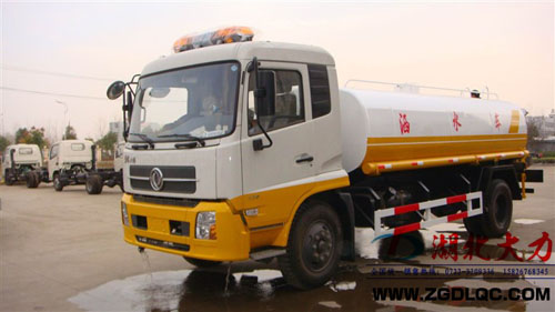 湖北大力汽車公司生產(chǎn)的東風(fēng)天錦灑水車垂直吸程可達(dá)到7米以上,灑水寬度≧14-16米,可噴射28-30米以上,揚(yáng)程90米。引水時間小于5min,流量90m3/h。罐體可以選橢圓形或方形,倉內(nèi)1.5米一道隔板,起到防波防蕩的效果。用戶還可以選擇對罐體進(jìn)行專業(yè)的防腐防銹處理,另外還配備多方位進(jìn)出水接頭、氣動閥、警燈等先進(jìn)設(shè)施,操作簡單、使用方便。
