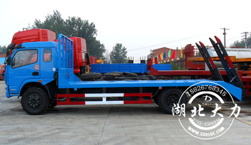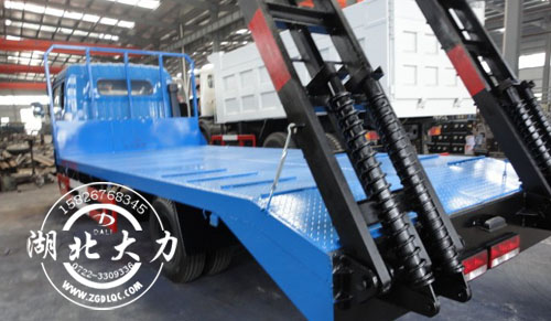 湖北大力專用汽車有限公司東風153平板運輸車整車尺寸8990×2500×2770MM,平板可用尺寸約6.7米,橫梁采用100×100×5MM國標方鋼,間距300MM,面板采用5MM厚花紋板,板面焊多根16的螺旋鋼,尾部帶雙彈簧爬梯,支腿2個,東風153平板運輸車尾部爬梯標配長2.2米,也可根據(jù)客戶需要加長至2.5米,還可以選裝液壓爬梯,價格另計。