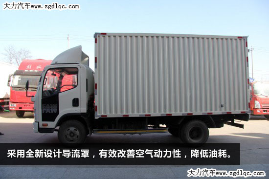 J6F 4x2廂式底盤軸距為3300mm,駕駛室使用1894mm排半駕駛室,J6F輕卡平板車型標(biāo)配天窗,貨箱車型標(biāo)配導(dǎo)流罩。全新設(shè)計(jì)導(dǎo)流罩,有效改善空氣動(dòng)力性,降低油耗。