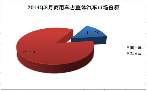 8月份,商用車247397輛的銷量在整個汽車市場僅占14.42%的份額。