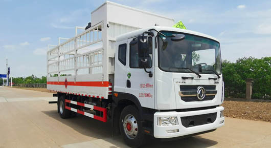 1.該車為危險品運輸車.運輸具有獨立容器(瓶)包裝的物品,類項號2.1,2.2.選掛2.1類易燃氣體標志牌或2.2類非易燃無毒氣體標志牌.2.后部安裝液壓尾板,液壓尾板收起水平長度:300mm,尾板質(zhì)量為450kg.側(cè)、后防護材料為Q235,連接方式:焊接連接,后防護截面高100mm,截面寬50mm,下邊緣離地高460mm.選裝后部不帶尾板時,后防護裝置材料:Q235,連接方式為焊接,后防護截面高100mm,截面寬50mm,下邊緣離地高460mm.3.隨底盤選裝駕駛室.選裝油箱,電瓶,儲氣筒,處理器安裝位置.選裝無柵欄樣式,帶柵欄樣式,選裝后部樣式.4.僅采用排氣管前置,子午胎,限速裝置,輔助制動裝置和前盤制動器的底盤;限速80km/h.5.安裝具有衛(wèi)星定位功能的行駛記錄儀.ABS型號:ABS/ASR-24V-4S/4M,ABS生產(chǎn)企業(yè):襄陽東風隆誠機械有限責任公司.6.發(fā)動機ZD30D16-6N,YCY24140-60,NV30-C6G,D4.0NS6B170,CY4SK261,YCY30165-60,CY4BK361對應的油耗值分別為(L/100km):17.2,16.5,17.3,18.0,17.4,17.5,17.9.7.轉(zhuǎn)向輪已安裝輪胎爆胎應急防護裝置.選裝ETC車載裝置.8.整車長/前懸/軸距/后懸(mm)對應關系為:5995/1130/3308/1557,6100/1130/3308/1662.