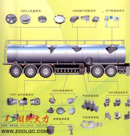 這個(gè)圖片可以很方便的看出來(lái),油罐車可以分倉(cāng)的,每一個(gè)倉(cāng)都需要一鋁合金罐口(也稱為人孔),可以帶防溢漏探頭,海底閥,卸油接頭,海底閥,又稱緊急切斷閥,安裝于罐體底部,進(jìn)行下裝加油時(shí)使用,操作簡(jiǎn)便、節(jié)時(shí)、安全環(huán)保。